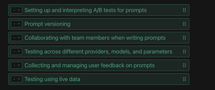 Another key abstraction is coupling the prompt + task-based (prompt chain for a task). Prompt templates - that maintain different versions of prompt for each task.